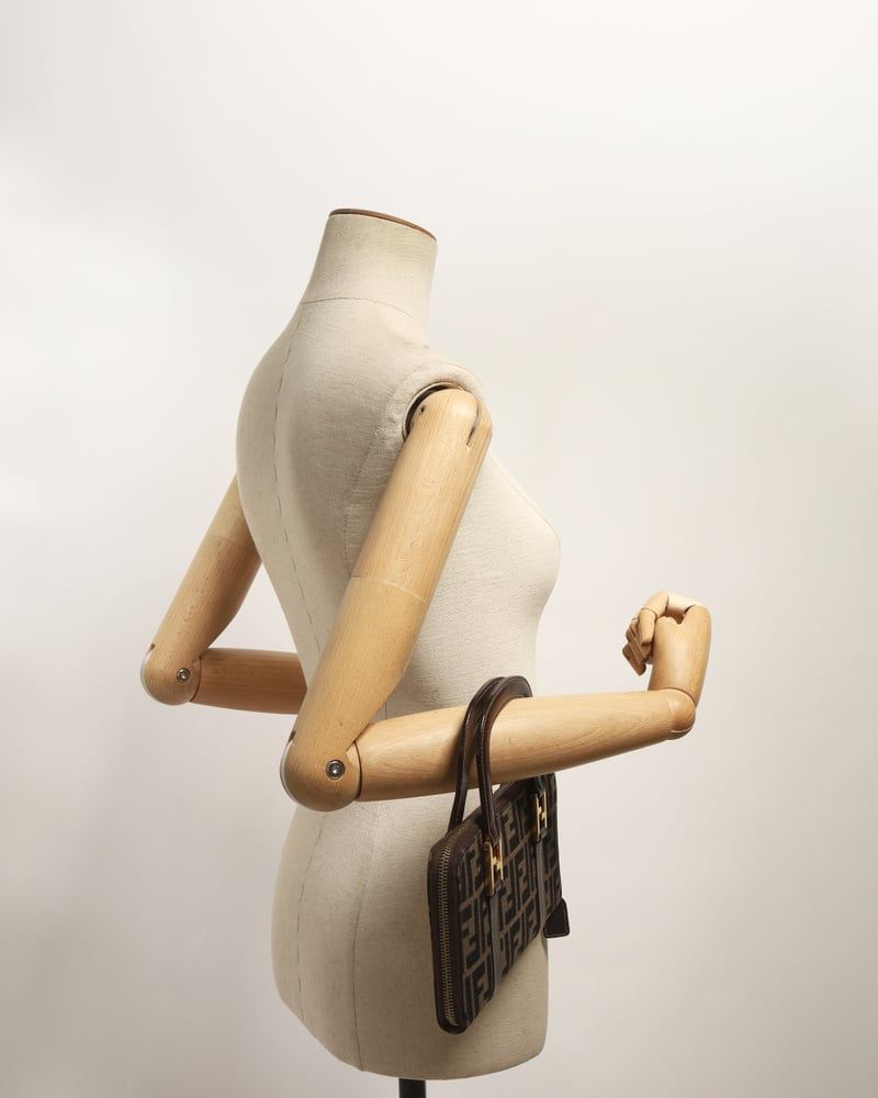 FENDI Zucca Handbag - Gold-tone hardware - Multicoloured zucca print - Dual flat leather handles - Tonal lining with leather lining and two compartments with eight pockets - Vintage Overall Preloved Condition: Very Good. Exterior Condition: Very Good. Minor mark on leather trim. Interior Condition: Very Good. Pressmarks at leather lining. Hardware: Shiny with scratches. Delivered with no accessories Made in Italy Dimensions: Height 13 cm Width 24 cm Depth 2 cm Handle drop 7 cm